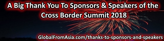 The host of Cross Border Summit 2018 is deeply grateful for the support of the corporate sponsors. These companies made the event possible, and the event will not be a success without their support.