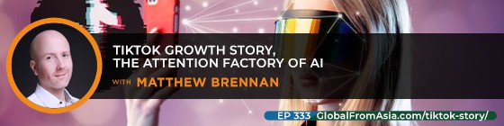 [00:00:00] Episode 333, three, three, three Global from Asia going in Tiktok story and the Attention Factory and Matt Brennan’s book and some amazing stuff. Let’s go into it today. Welcome to the Global from Asia podcast, where the daunting process of running an international business is broken down, into straight up actionable advice.