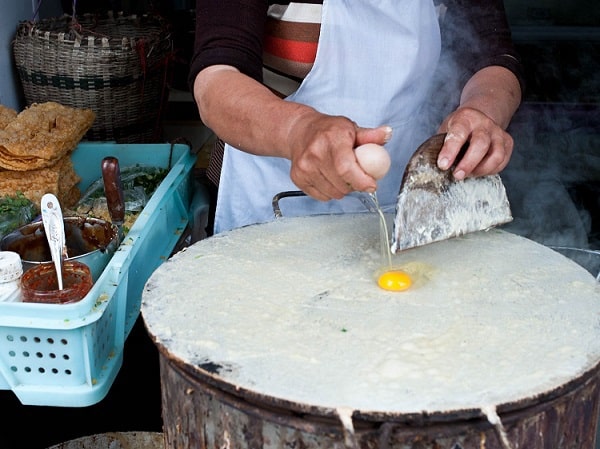 ● Jianbing. Regardless of exotic and unclear for European people name, these are basically pancakes, which we all know and love. They are made of liquid dough and served with scallions, garlic, sunflower seeds and other kinds of toppings. The process of preparing jianbing is pretty spectacular – they are made on the street and fried on a very hot surface in front of the public.