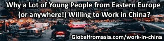 Young people from Eastern Europe prefer to work in China because there are less economic restrictions. Obtaining the Chinese visa is quite easy, comparing to American visa for example, and getting the legal work is straightforward. This is a great plus for young people who are trying to work overseas and usually face problems while finding a job in the USA and EU.